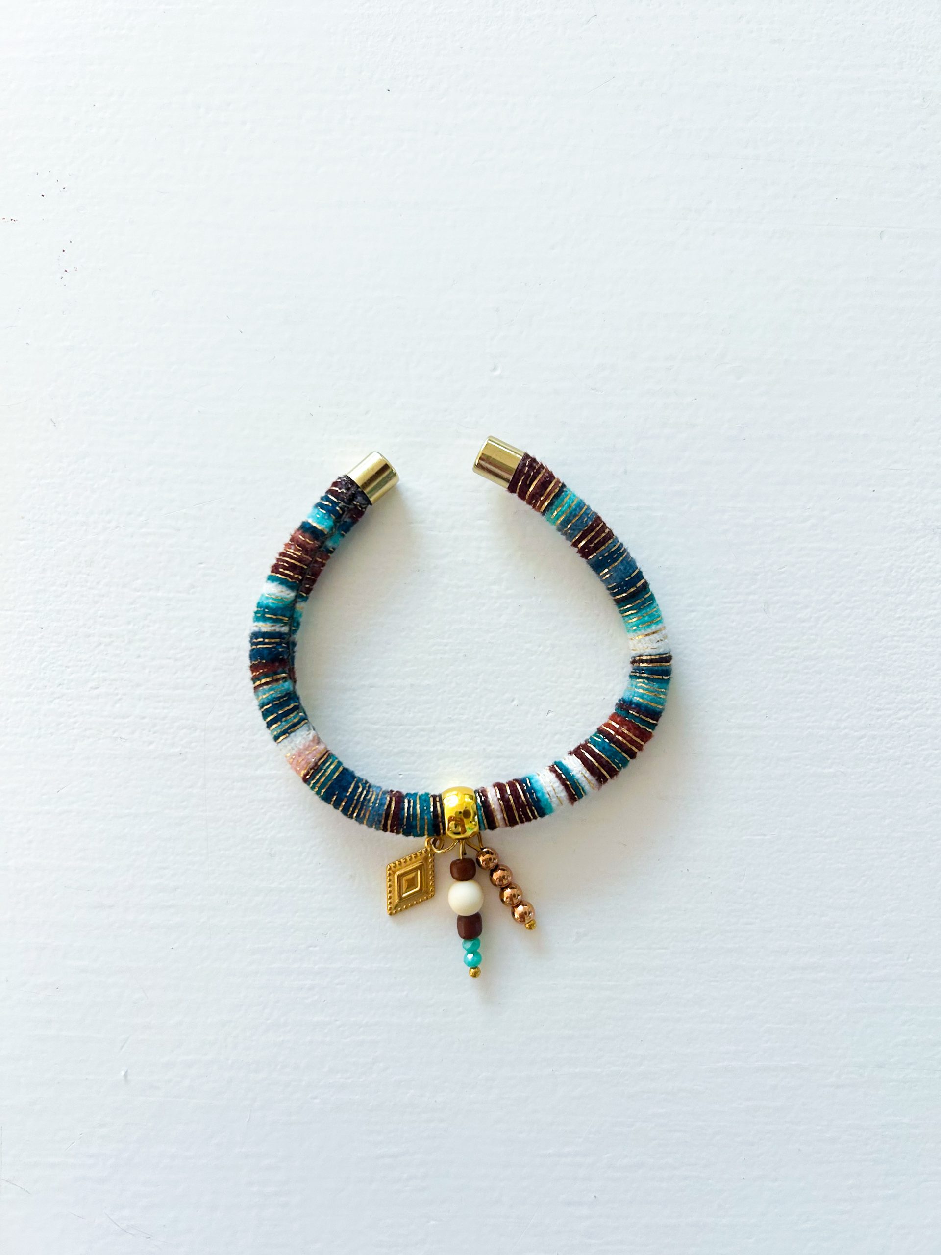 Deze super leuke boho armband heeft de meest fantastische hippe kleuren die makkelijk te combineren is bij elke outfit. Helemaal tof afgewerkt met drie bedels van stainless steel en kleurrijke kralen. Combineer het met de bijpassende boho magic oorbellen. Het leuke van deze set is dat je samen met je dochter kunt twinnen!! De armband is te verstellen als een slavenarmband, door het wat aan te knijpen!